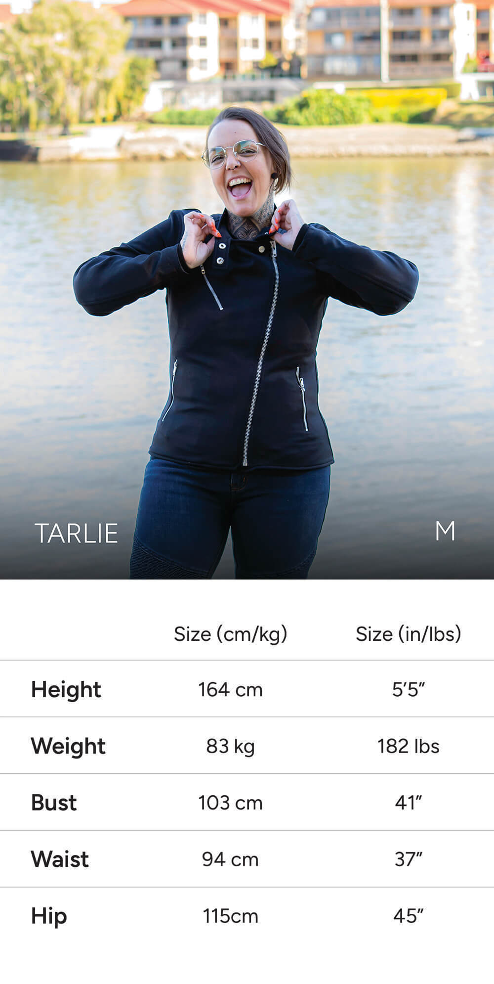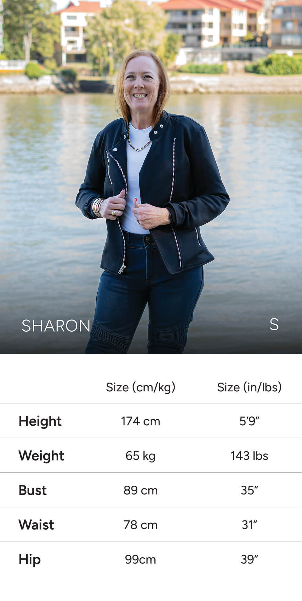 Note: Some models share similar measurements, but are wearing different sizes to show how the fit varies by body type and personal preference (e.g. tighter vs looser fit).