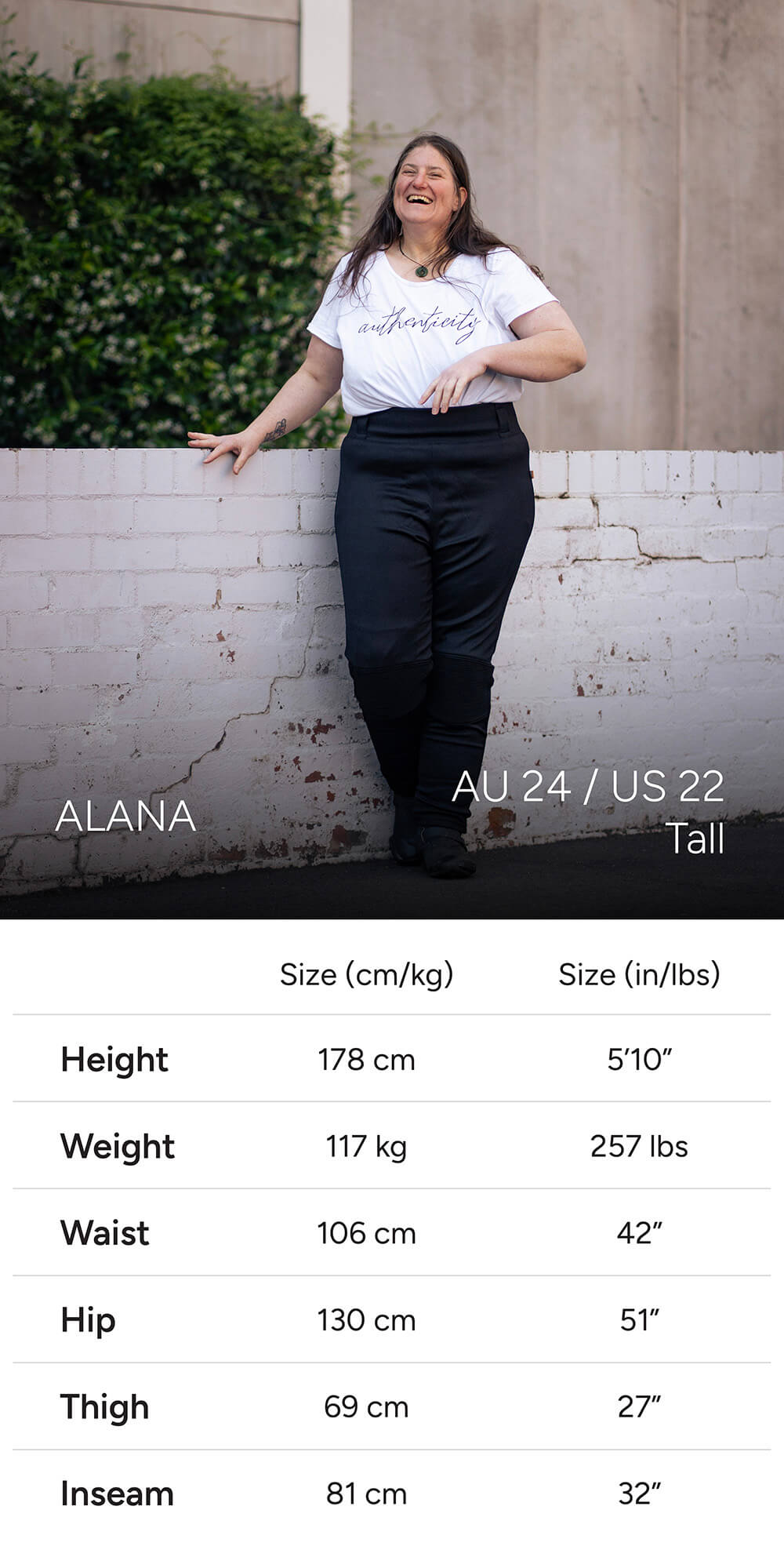 Feel free to send us full-body photos to assist with determining your body shape, or schedule an online Fit Consultation for personalised live sizing advice.
