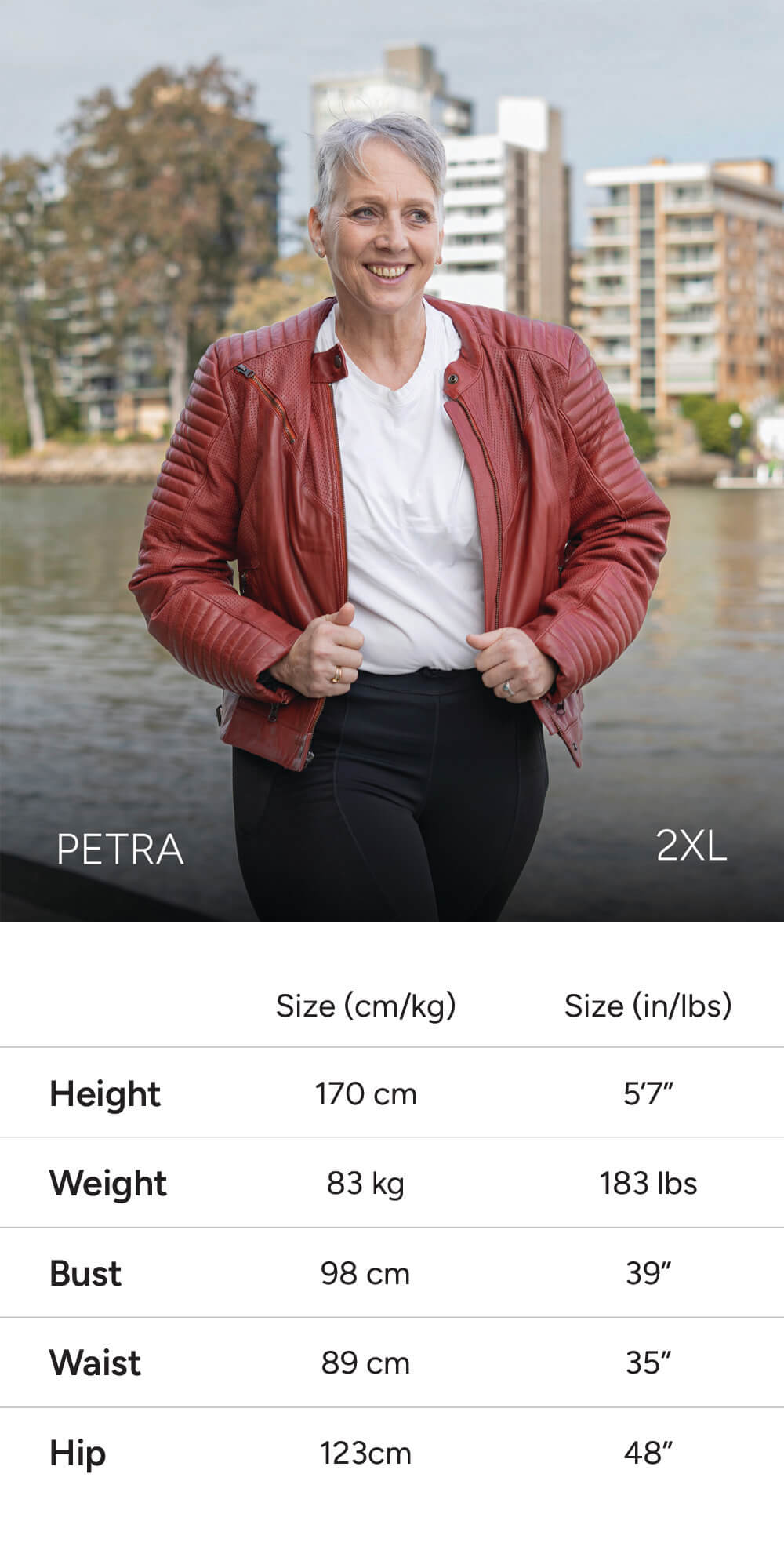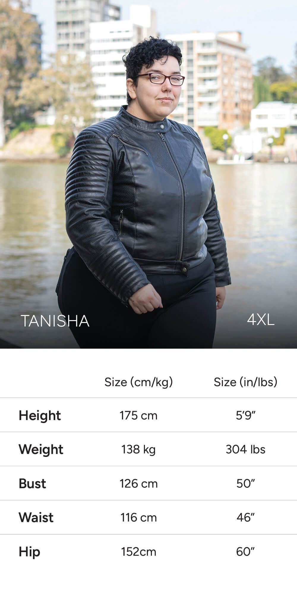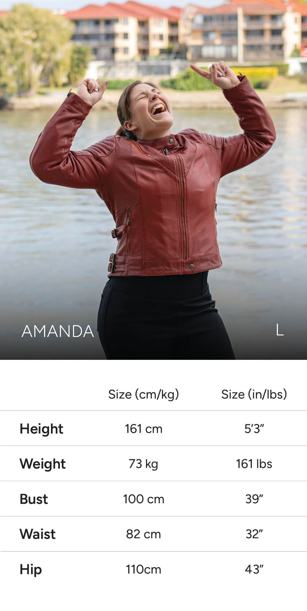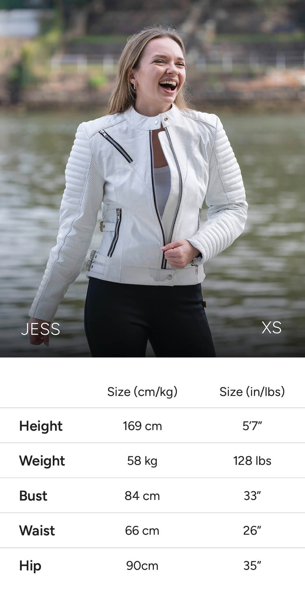 Note: Some models share similar measurements, but are wearing different sizes to show how the fit varies by body type and personal preference (e.g. tighter vs looser fit).