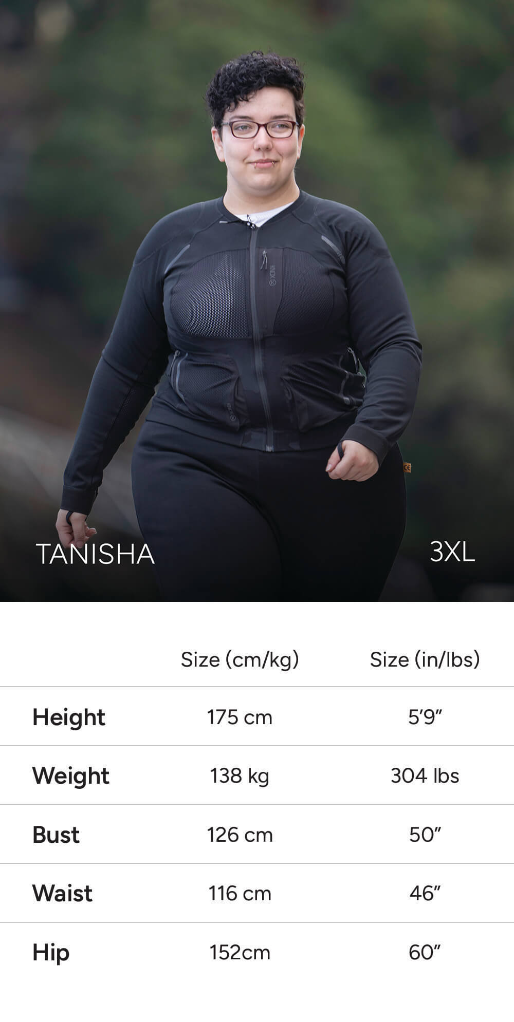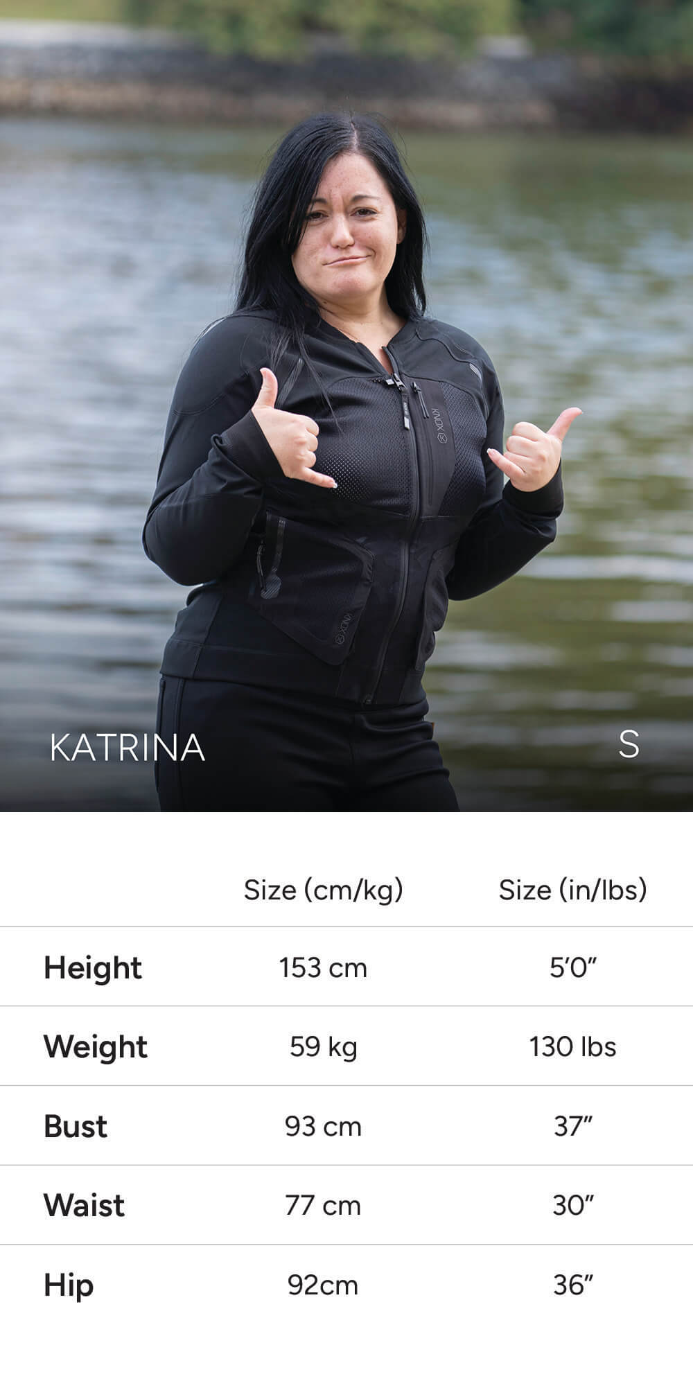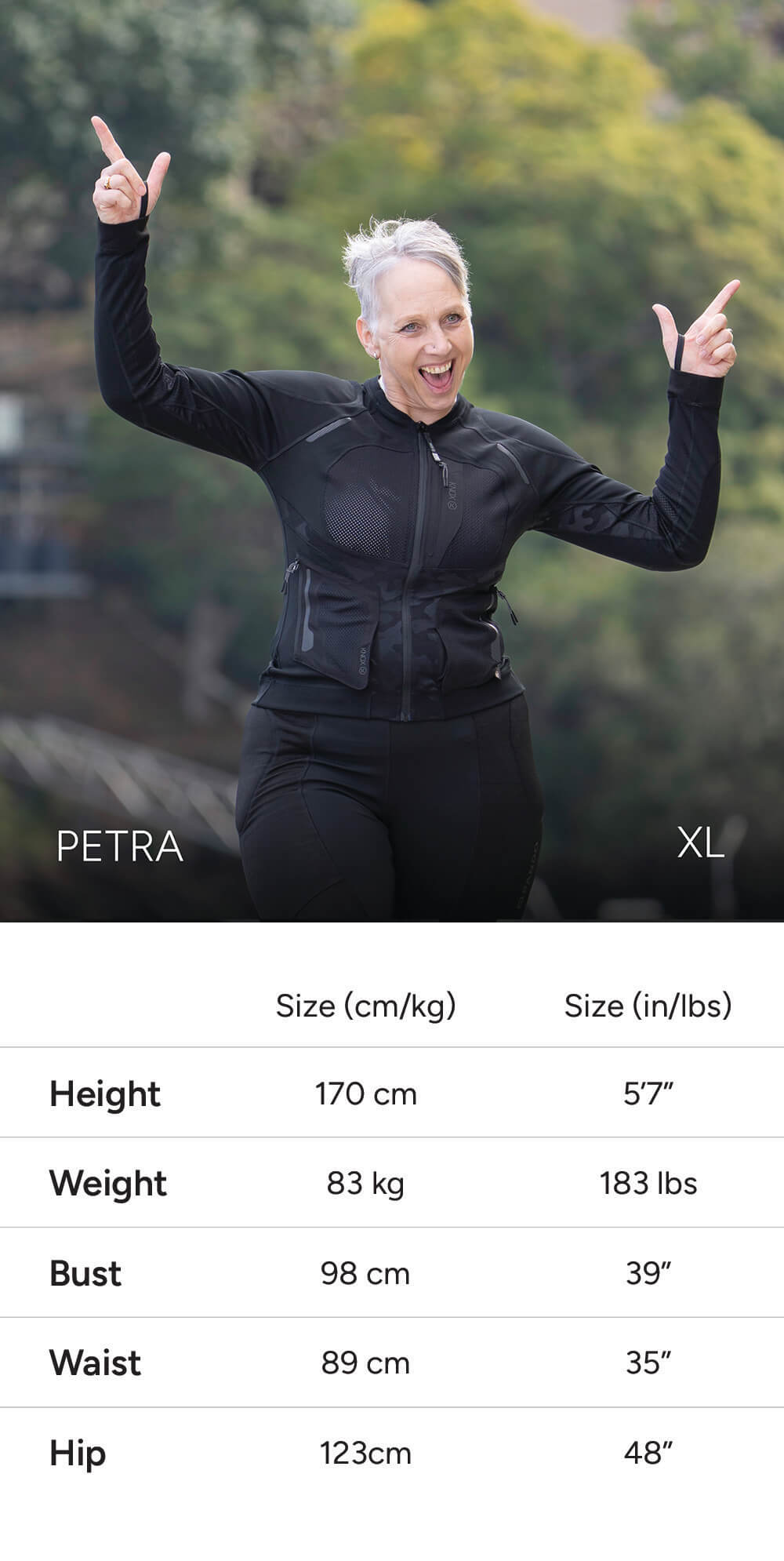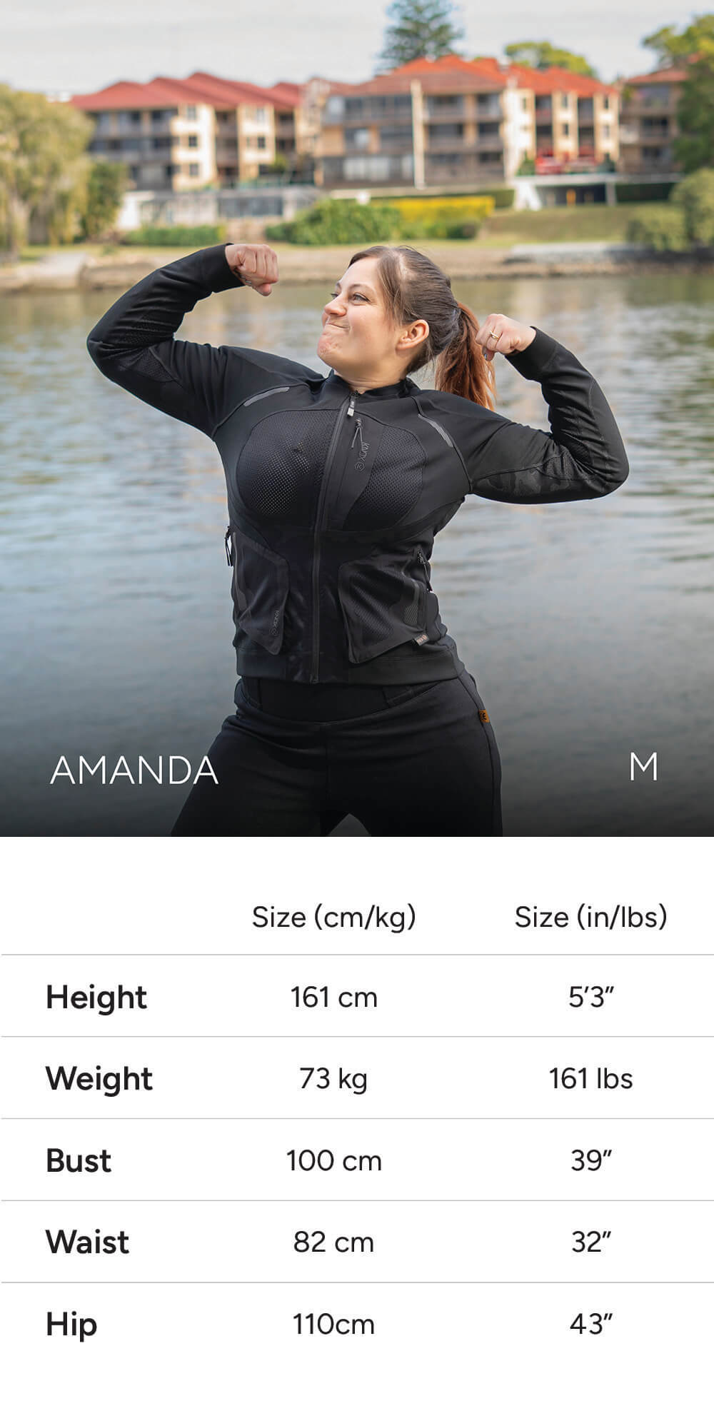 Note: Some models share similar measurements, but are wearing different sizes to show how the fit varies by body type and personal preference (e.g. tighter vs looser fit).